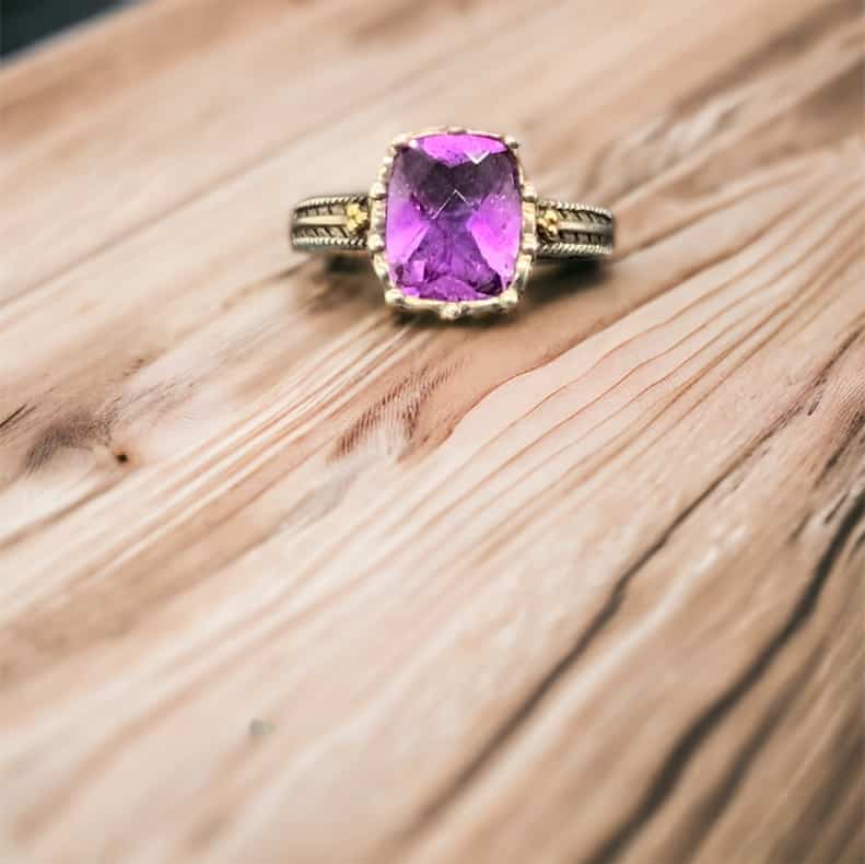 Introducing our Astonishing Amethyst Sterling Silver and 18kt Yellow Gold product meticulously crafted with sterling silver weighing 3.77 g and adorned with 18kt yellow gold accents. This product balances classic elegance and contemporary sophistication, making it an ideal accessory for both men’s and women’s wardrobe.