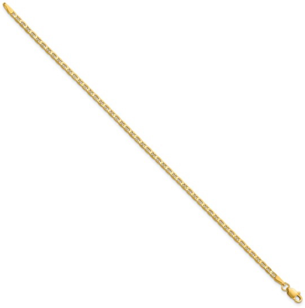 Exemplifying the richness of 10kt yellow gold, this anklet shimmers with inherent luster, crafting a unique allure that effortlessly surpasses modern fashion trends. With its distinctive weight and design, this flat anchor link anklet stands as an eloquent testament to immaculate taste – a harmonious blend of elegance and affluence.