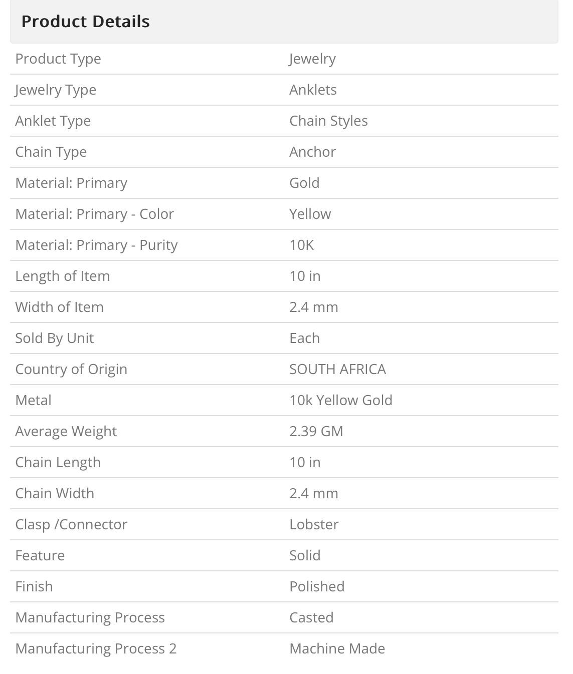 Our journey in the realm of fine craftsmanship, rooted in elegance and refinement, consistently produces remarkable pieces for our gold jewelry collection. This anklet aims to enhance the wearer’s allure, transforming even the simplest outfit into a high-fashion ensemble. Adorn yourself with this 10kt Yellow Gold Anklet and embark on a stylish adventure that promises timeless charm.