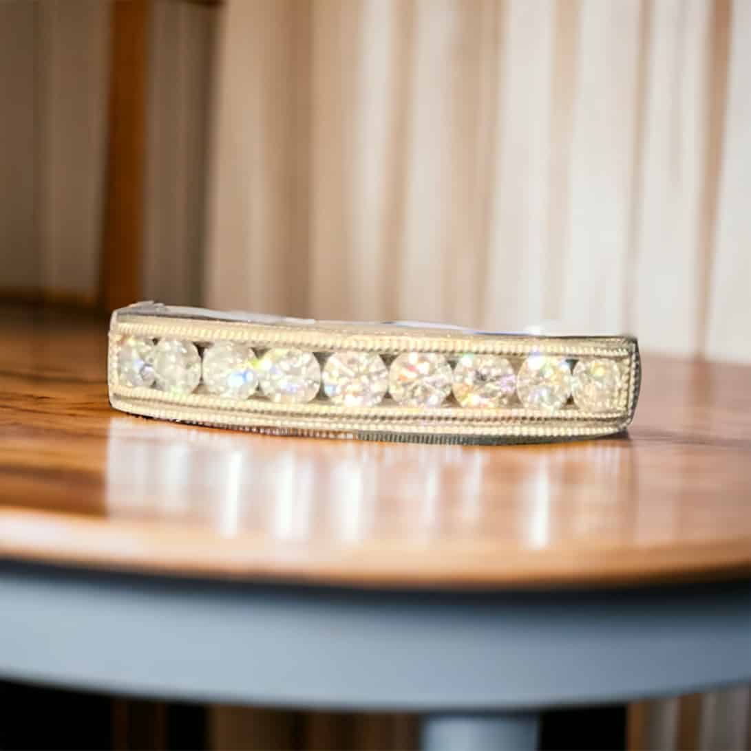 The Diamond, a gem associated with love and longevity, further enhances this sentiment. Its sparkly allure brings a touch of magic and a sparkle that will remain everlastingly beautiful. Thus, choosing this diamond band is not just selecting an accessory, it’s embracing the enduring symbol of love and the promise of a never-ending journey together.