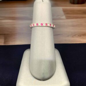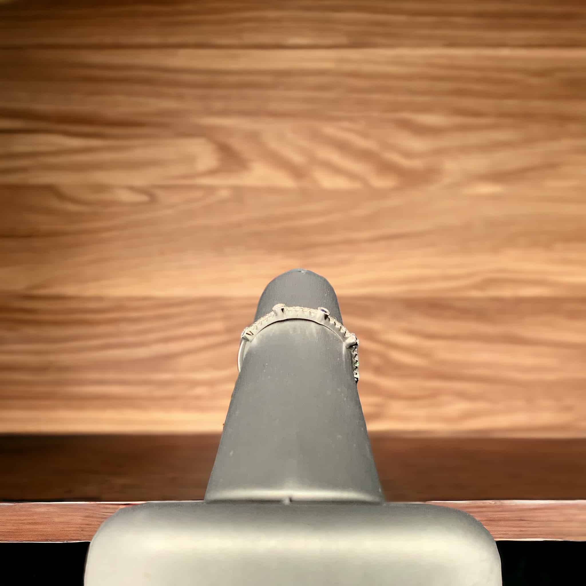 The Diamond, known for its stunning brilliance and durability, pairs remarkably well with the Sapphire, renowned for its deep, celestial blue hues. Together, they produce a striking contrast that is both elegant and sophisticated. The sparkling Diamond paired with the Sapphire, symbolizes an enduring commitment, making this piece ideal for an anniversary gift.