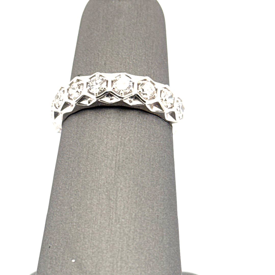 Our Sterling Silver Lab-Grown Diamond Band constitutes a valuable addition to any collection, projecting a timeless charm. It celebrates extraordinary craftsmanship and sophisticated design, tailored meticulously for a lifetime of admiration. This band is more than a piece of jewelry; it’s an enduring expression of your love for intricate, high-quality designs, and ethically-sourced elegance.