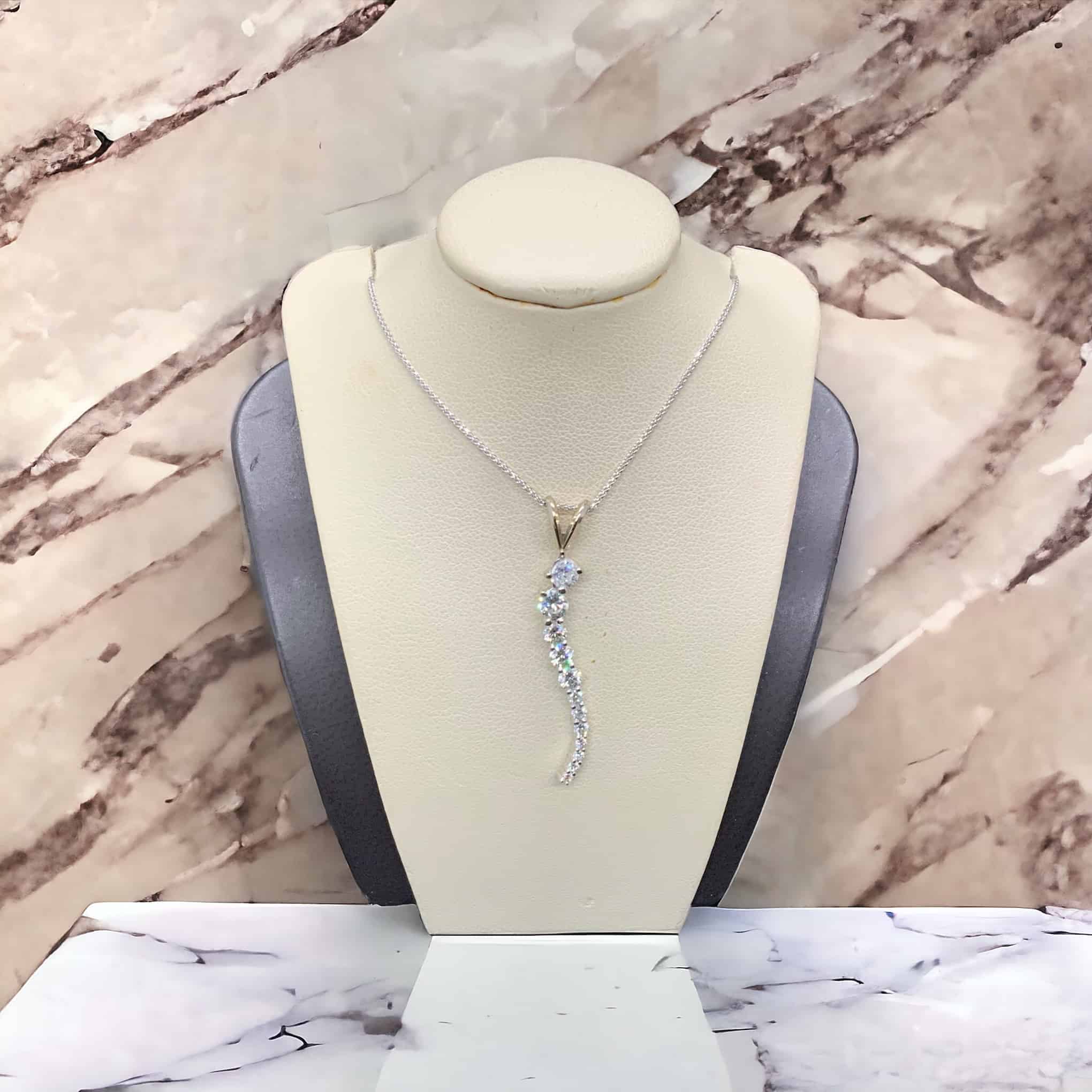 1.00 total weight Diamond Curve Pendant 14KW. 18” 18KW chain