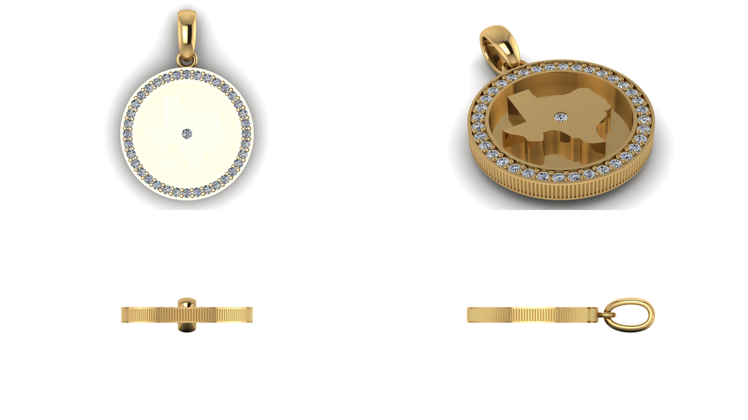Crafted in 14k yellow gold with a flush-set diamond over Kerrville, it rests in a halo of diamonds — a symbol of resilience, rooted in place and community.