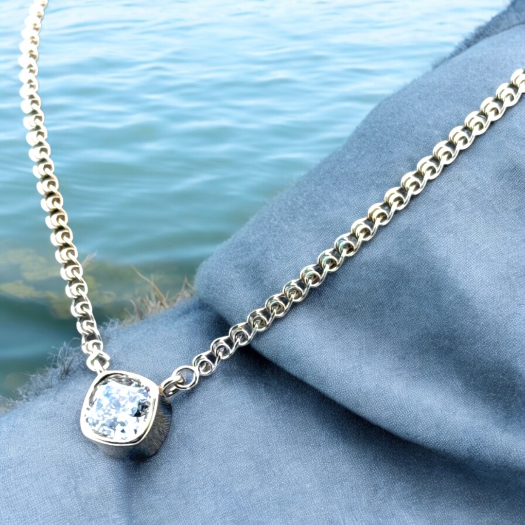At the heart of this pendant, is a Cushion Cut diamond of 1.09 carats with a high-quality grade of E/VVS2. The diamond is showcased in a bezel setting, ensuring its security while enhancing its brilliance. The pure yellow gold beautifully complements the shimmering diamond, creating a captivating piece that surpasses traditional pendants, defining your individual style. The fusion of gold and a bezel-set diamond emits an aura of timeless elegance, setting this diamond pendant apart as a unique masterpiece in the realm of gold jewelry.