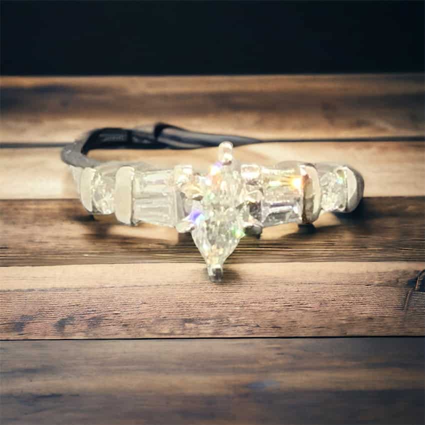 Platinum Bridal Marquee Center Stone. Approximately 1/2 Total Weight in Diamonds