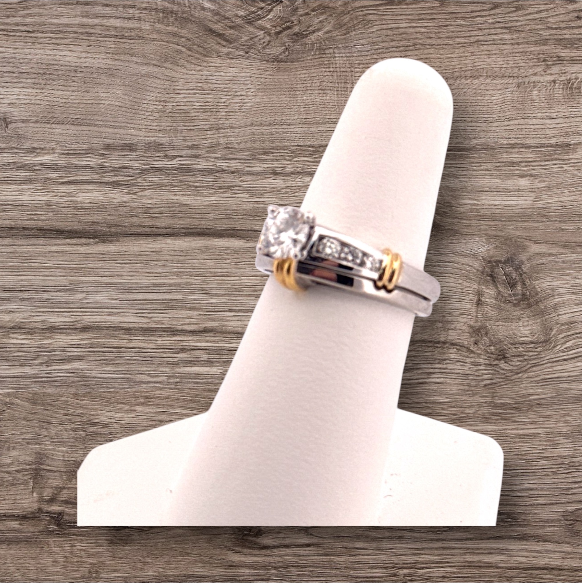 18K White and Yellow Gold Bridal Set Semi Mount. Approximately 1/4 carat Total Weight in Set. Will accommodate 4×4 mm stone