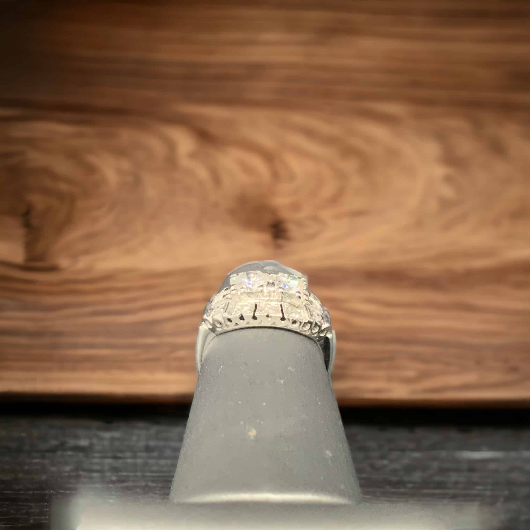 Platinum Classic Bridal 2 Round Brilliant Center Stones Approximately 1.00 Total Weight Surrounded by 10 Round Brilliant Diamonds Approximately .10 Total Diamond Weight 1.10