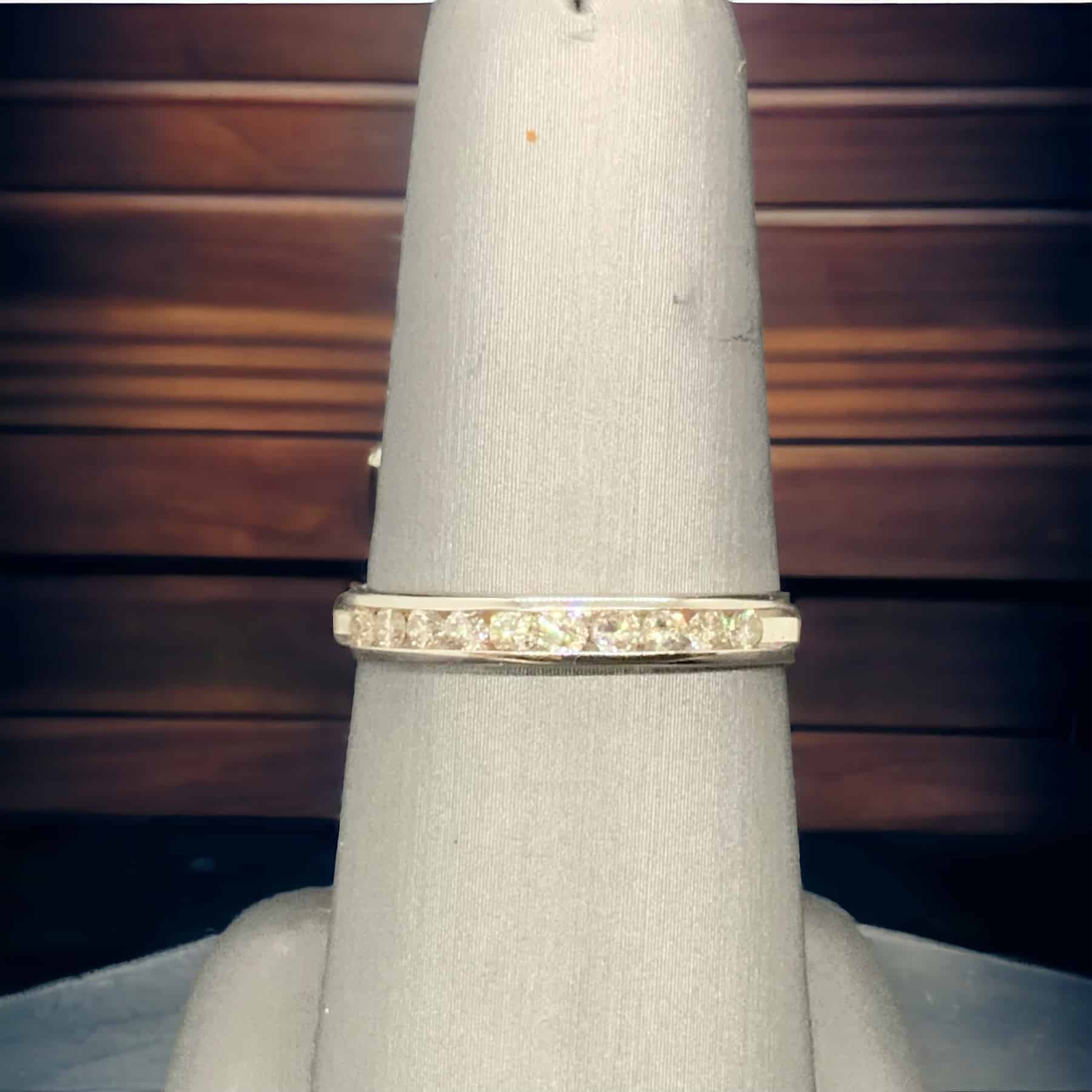 Introducing an exquisite and beautifully crafted diamond band, designed with devotion and precision for those cherishing special moments. The band showcases multiple diamonds of 0.25 carat in total weight, gracefully set in 14kt white gold which weighs 2.7 grams, creating a mesmerizing harmonization of luxury and elegance.