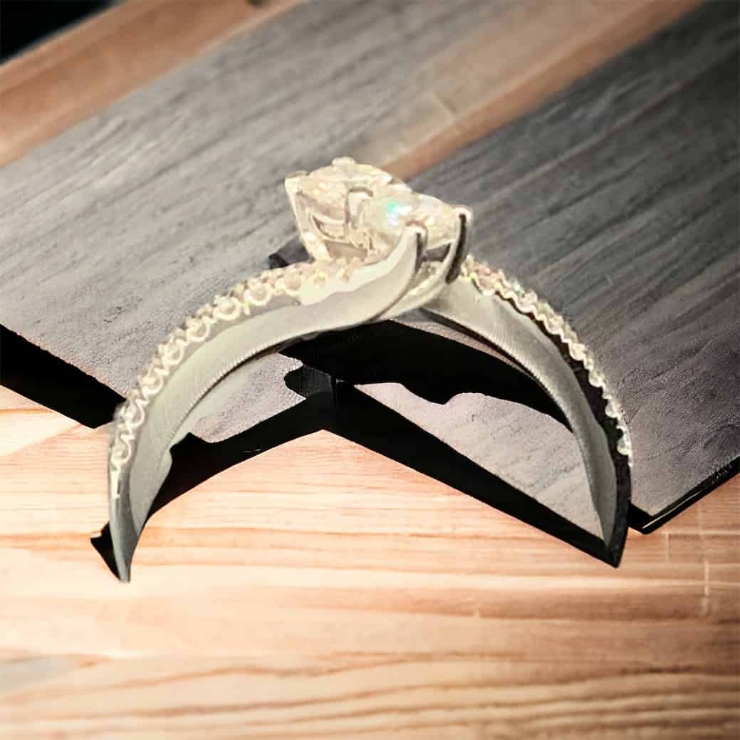 14K White Gold Bypass Ring. 24 Round Brilliant Diamonds Approximately .55 Total Weight in Diamonds