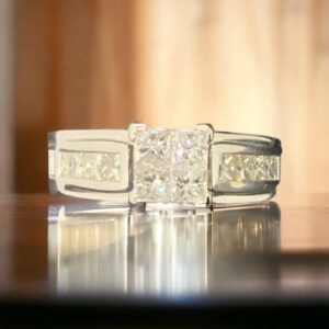 With a composition of superior quality platinum weighing 6.25 grams, this band boasts three princess cut diamonds, weighing 1.35 carats TW, offering a stunning look that transcends conventional jewelry design norms. Proudly standing as a testament to your discerning taste, the band signifies a downright blend of luxury and ageless grace with its design.