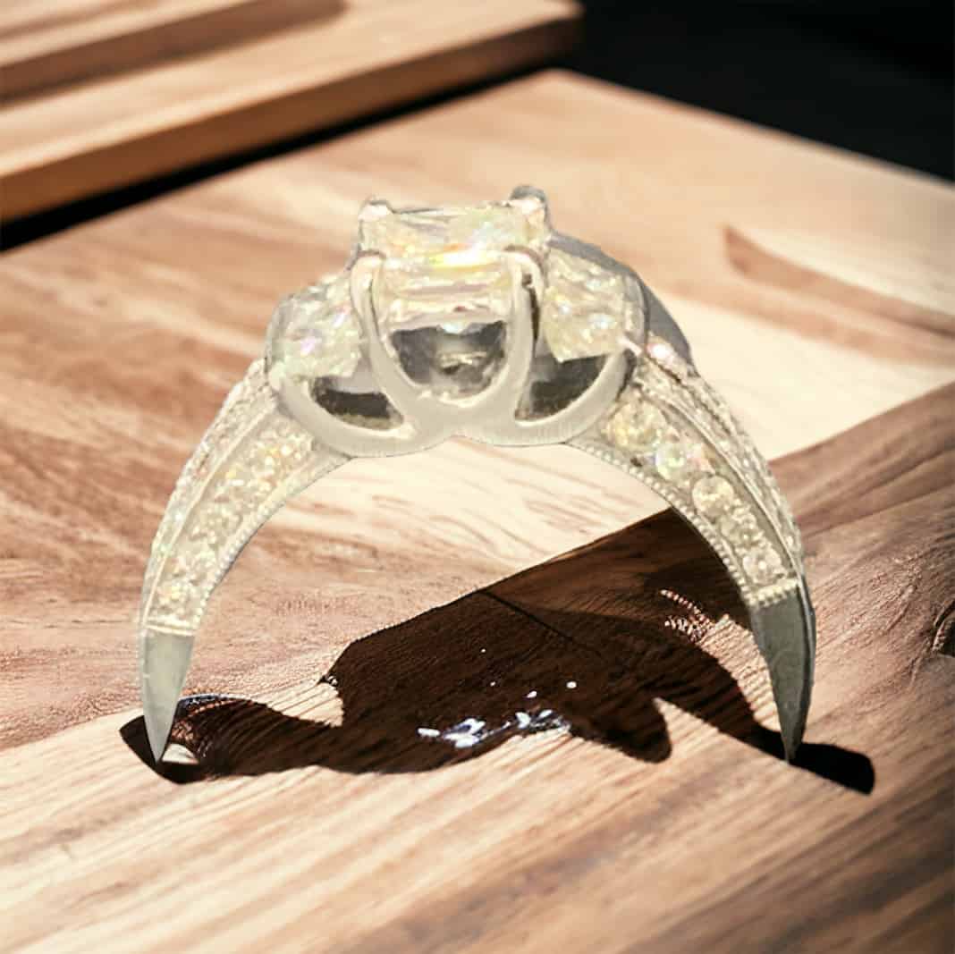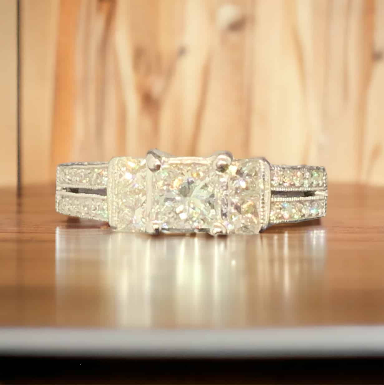 14K White Gold Princess Bridal. Approximately 1.00 Total Weight in Diamonds