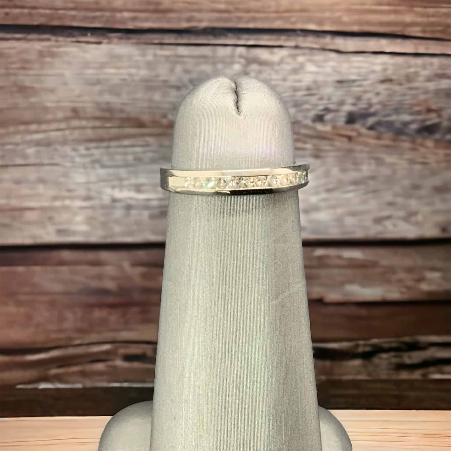 The quality and splendor of the diamond are indeed radiant. Known as a symbol of love and commitment, this gemstone brings its own unique allure to this wedding band. The brilliance of the diamond contrasts magnificently with the striking white gold band, carving an ethereal harmony of refined charm and grace.