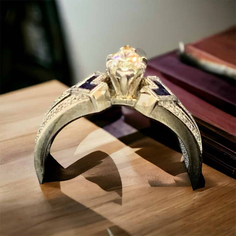 The design itself features a 14kt white gold band weighing 4.95 grams, giving it the right amount of heft and durability without compromising elegance. At its heart lies a marquee center diamond weighing 0.5 carats, serving as a shining symbol of enduring love. Further adorned with round diamond accents weighing 0.10 carat, the ring comes to life with a sparkle that captures light from all angles, making this an extraordinarily captivating piece.
