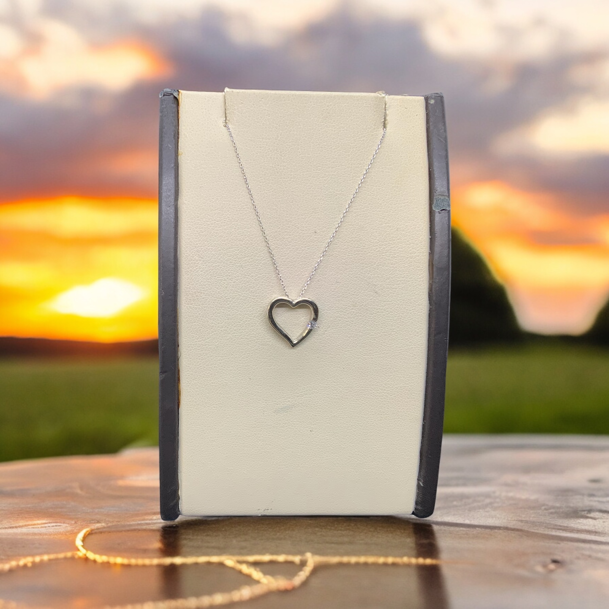 Note that this necklace is not merely gorgeous but also built to last, due to it being designed with high-quality 10kt white gold. Truly, this heart pendant necklace serves both aesthetic desires and quality necessity. Slip it around your neck for a touch of grandeur and feel its enduring charm.