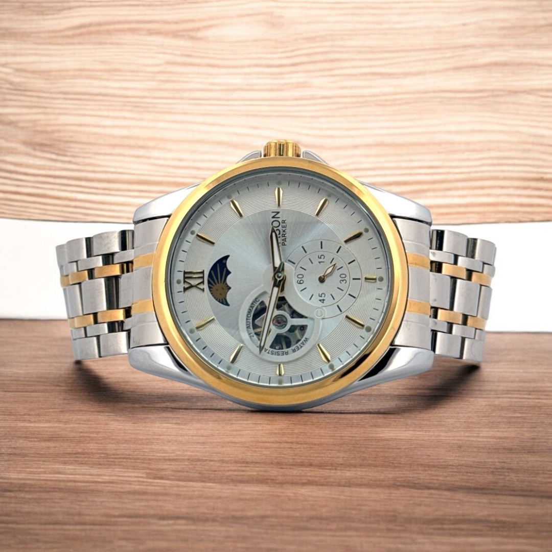 The Automatic Watch in the Mason Parker Collection is more than a functional timepiece. It personifies a flawless fusion of superior design quality, bespoke craftsmanship, and unparalleled style. Be it a thoughtful present or an essential addition to your own collection, this watch embodies an appreciation for detailed luxury and enduring grace.