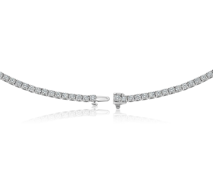 Brilliantly forged from radiant 14kt white gold, this necklace showcases the iconic tennis design, studded with a parade of scintillating diamonds. The luster of white gold interweaving with the magnificent glitter of the diamonds creates an illustrious charm, outshining any commonplace jewelry and endorsing your unparalleled taste. The cohesive blend of white gold and diamonds exudes an aura of timeless elegance and luxurious charm that is distinctively its own.