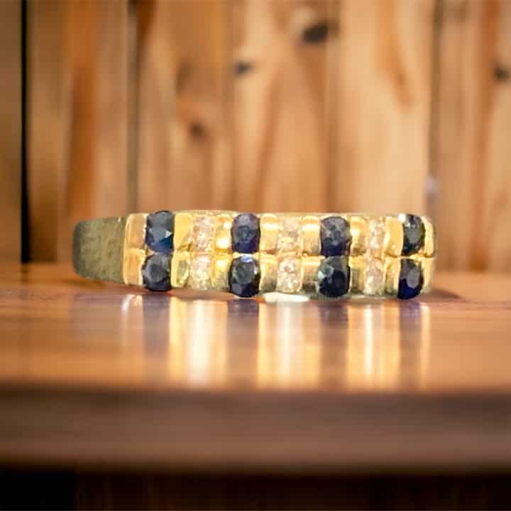 14K Sapphire Diamond Ring. 4 Rows Sapphire’s 3 Rows Diamonds