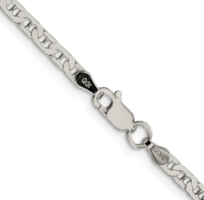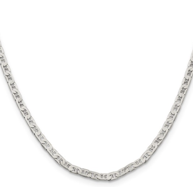 Introducing our exquisite Sterling Silver Beveled Flat Anchor Link Chain Necklace, a personification of elegance and sophistication. Intricately crafted from the finest 8.99g of sterling silver, this magnificent necklace exudes a timeless charm and contemporary style, making it a must-have addition to your esteemed jewelry collection.