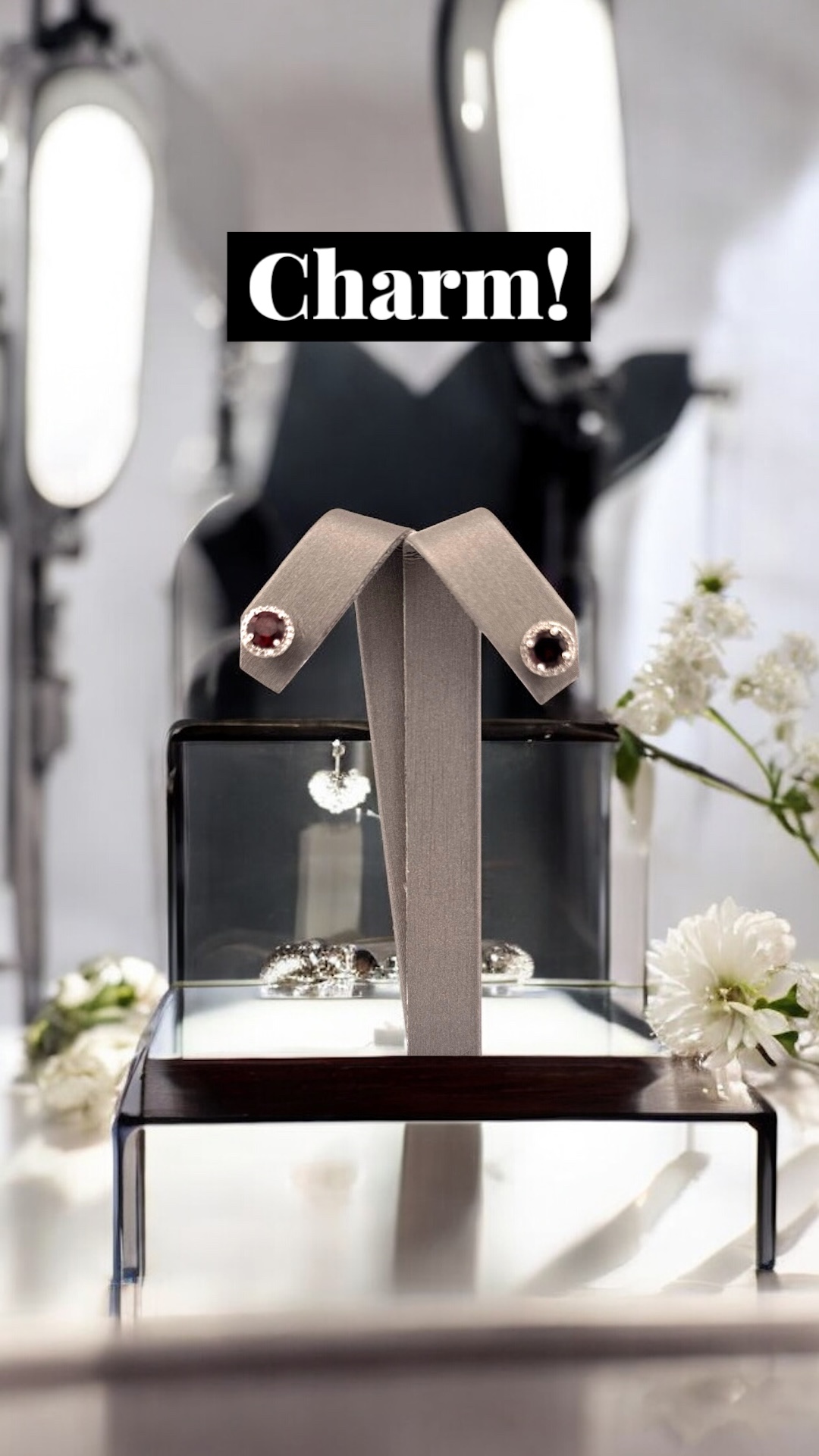 Our Garnet Sterling Silver Halo Stud Earrings represent more than mere accessories. They are a reflection of your distinct taste and individual style. Complementing any attire impeccably, these earrings elevate your inherent elegance and sophistication, while the sparkle of diamonds and garnets adds a luxurious touch to your day.